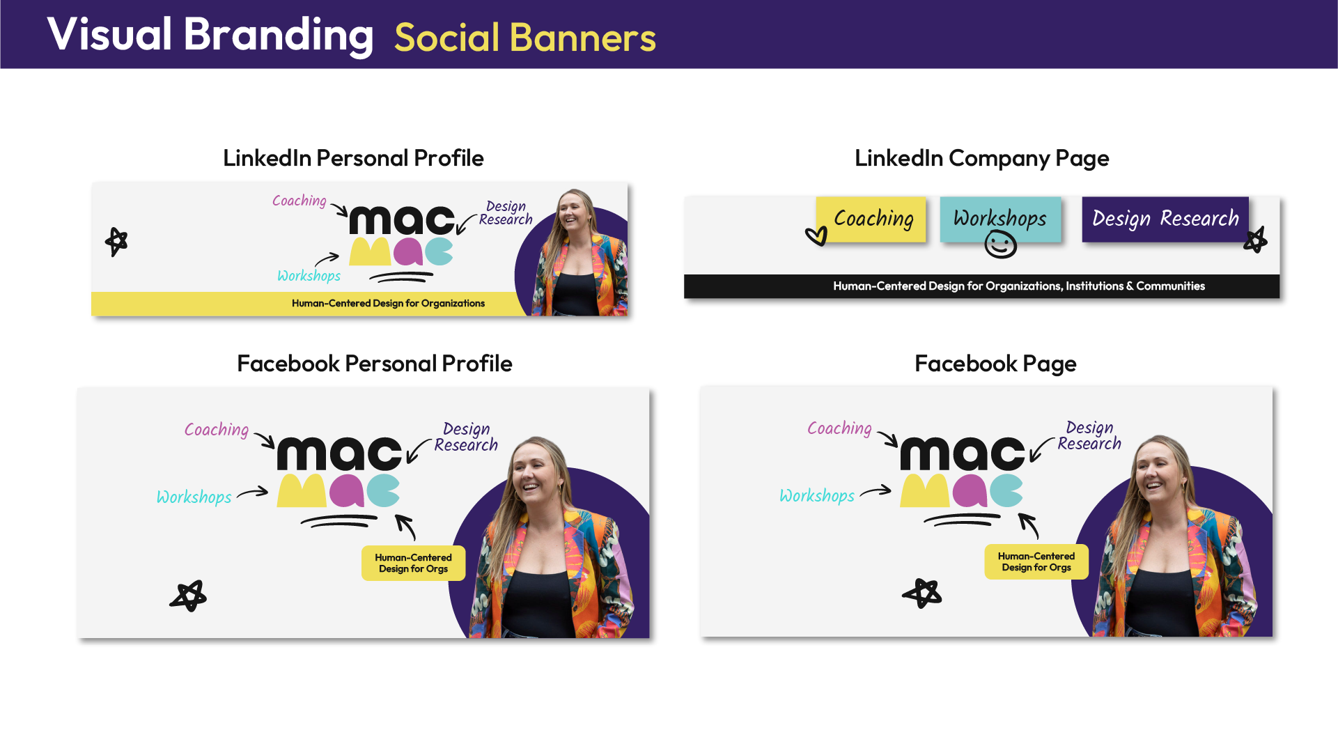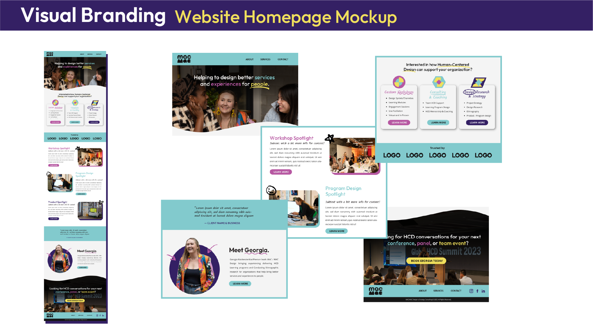 It’s playful but assembled at the same time, and speaks to the two sides of their brand — the side that’s all about strategic planning with big institutions, and the other side that’s all about coming up with creative, people-focused solutions. Visually, this shines through in a style that combines simple shapes with bold colours and hand-drawn elements to showcase the creative and collaborative, but also strategic and systematic way MAC/MAC works with their clients!